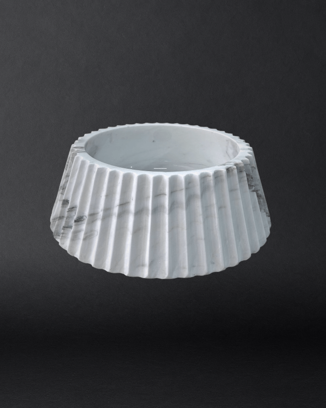 The FLUTARA basin is a masterpiece of tactile elegance, its wide, shallow bowl seamlessly paired with a delicately fluted exterior. This countertop basin evokes a sense of classical refinement with its soft, pleated design, offering a perfect balance of form and function. Ideal for minimalist bathrooms, this piece adds a touch of architectural sophistication to any space.